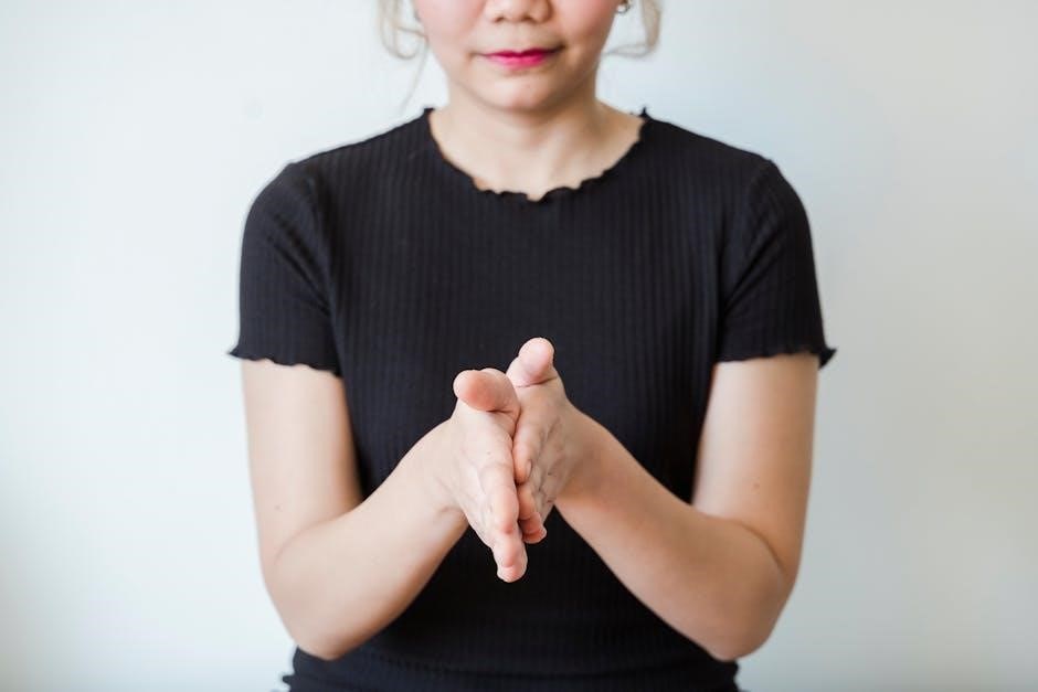 Steepling hands (fingertips touching) often suggests confidence and authority. Wringing hands typically displays anxiety or distress. The rate and size of hand movements also matter; energetic gestures often accompany enthusiasm‚ while smaller‚ restrained movements might indicate uncertainty.